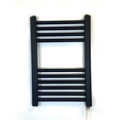 General description Its elegant shape with round cross tubes is simple yet modern, adding a touch of class to any style of bathroom. Designed to provide ample slots for hanging towels, it ensures maximum heat output while remaining practical for use, effectively supplying heat to your bathroom. Technical specifications Dimensions: W400mm x H600mm Material: Low carbon steel Finish: Matt Black powder coat for corrosion resistance Heating elements: CE certified European designed PTC heating elements Compatibility and accessories Optional 7-day programmable timer Built-in room thermostat Installation Easy to install in any bathroom setting Usage Set the towel rail to turn on and off according to your schedule for maximum comfort Manual function available for additional heat when needed Automatically maintains a constant temperature