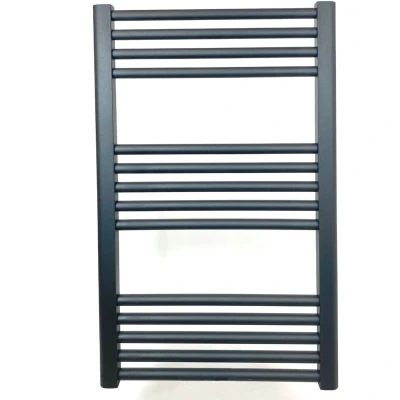 ManoManoGeneral description Manufactured from anthracite powder-coated steel, this central heating towel rail is designed for use in both domestic and commercial wet central heating systems. Its elegant shape with round cross tubes is simple yet modern, adding a touch of class to any bathroom style. Designed to provide ample slots for hanging towels, it ensures maximum heat output while remaining practical for use, effectively supplying heat to your bathroom. Technical specifications Material: Anthracite powder-coated low carbon steel Distance from the wall to the front of the rail: Adjustable between 87 and 110mm Maximum working pressure: 8 bar Water connections: ½” BSP Cross tube diameter: 22mm Certification: CE and EN442 Other information 5-year guarantee High-quality finish with tough, hard-wearing anthracite powder coat for maximum corrosion resistance