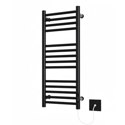 Greened House Black Electric Heated Towel Rail 300mm W x 720 H with Built in Timer Matt Energy Efficient