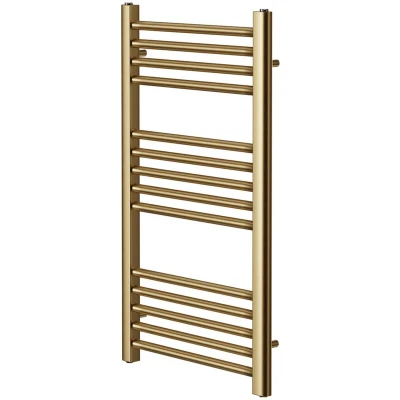 Greened House Brushed Brass Straight Heated Towel Rail 400mm Wide x 800mm High Flat Central Heating Bathtoom Radiator