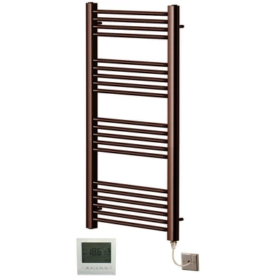 Greened House Brushed Bronze Electric Straight Heated Towel Rail Flat Radiator (500mm W x 1200mm H + Timer/Thermostat)