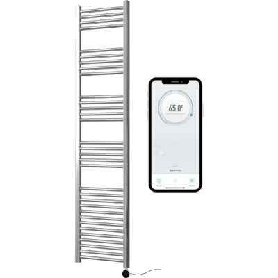 Greened House Chrome Electric Smart WiFi Controlled Heated Towel Rail 400mm W x 1800mm H Flat 7 Day Programmable Timer App Compatibility