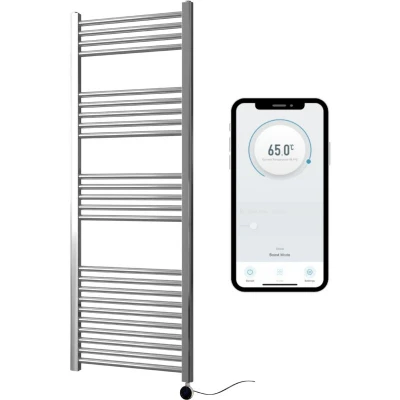 Greened House Chrome Electric Smart WiFi Controlled Heated Towel Rail 500mm W x 1600mm H Flat 7 Day Programmable Timer App Compatibility