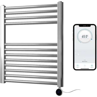 General description With their sleek and polished appearance, our chrome heated towel rails elevate the aesthetic of your bathroom. These rails offer plenty of space to hang your towels with a sufficient supply of heat, making them a popular choice for all modern bathrooms. Technical specifications Material: Mild Steel Finish: Chrome plated Shape: Flat/Straight Heat Source: Electric 220-240V 50Hz with 1m long power cord (requires hard wiring) Cross tube diameter: 22mm IP Rating: IP64 Fixings included 5 year guarantee on the towel rail, 2 year guarantee on the WiFi Element Compatibility and accessories Wi-Fi heating element Adjustable wall brackets Wall fixing screws and wall plugs Installation Element can be fitted to either side of the towel rail (must be on the bottom) Usage Control your heating from your smartphone with a free downloadable app, available for both iOS and Android operating systems. Turn the heating element on or off, adjust the temperature, and set schedules and