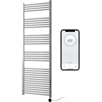 General description With their sleek and polished appearance, our chrome heated towel rails elevate the aesthetic of your bathroom. These rails offer plenty of space to hang your towels with a sufficient supply of heat, making them a popular choice for all modern bathrooms. Technical specifications Material: Mild Steel Finish: Chrome plated Shape: Flat/Straight Heat Source: Electric 220-240V 50Hz with 1m long power cord (requires hard wiring) Cross tube diameter: 22mm IP Rating: IP64 Fixings included 5 year guarantee on the towel rail, 2 year guarantee on the WiFi Element Compatibility and accessories Wi-Fi heating element Adjustable wall brackets Wall fixing screws and wall plugs Installation Element can be fitted to either side of the towel rail (must be on the bottom) Usage Control your heating from your smartphone with a free downloadable app, available for both iOS and Android operating systems. Turn the heating element on or off, adjust the temperature, and set schedules and