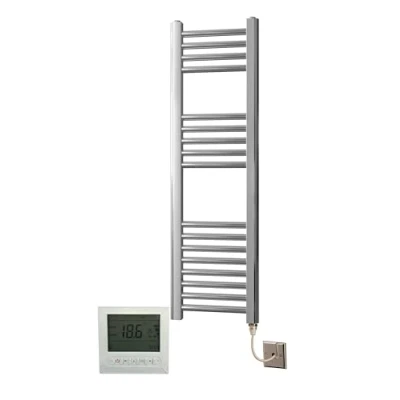 ManoManoGeneral description These chrome plated flat electric towel rails feature an energy-efficient PTC electric heating element, combining cost-effective operation with excellent handcrafted build quality. They are filled with a glycol solution to prevent freezing and corrosion, while also reducing noise compared to traditional towel warmers filled only with water. The high specification IP64 rated CE approved PTC electrical element ensures a safe and stable temperature of 70°C, which can be adjusted with a dimmer switch. The element operates at full power until the desired temperature is reached, then reduces power to maintain efficiency. A bidex timer is included for customizable operation, allowing you to set specific times for the towel rail to turn on and off or activate based on room temperature. This feature promotes energy savings by heating rooms only when needed. Installation must be performed outside of the bathroom by a qualified electrician, connecting to a switched 5amp fuse