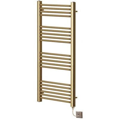 Greened House Electric Brushed Brass Straight Heated Towel Rail 400mm Wide x 1200mm High Flat Radiator