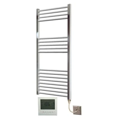 Greened House Electric Chrome 400W x 1000H Flat Towel Rail + Timer and Room Thermostat Bathroom Rails