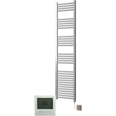 Greened House Electric Chrome 500W x 1600H Flat Towel Rail + Timer and Room Thermostat New Bathroom Rails