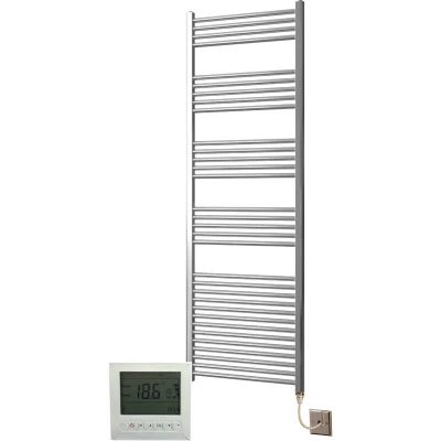 Greened House Electric Chrome 600W x 1800H Straight Towel Rail + Timer and Room Thermostat New Bathroom Rails