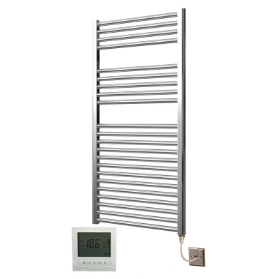 General description Our Extra High Heat Output Chrome Electric Towel Rail is designed to provide exceptional heating performance while enhancing the aesthetic of your bathroom. With 25mm cross bars, it delivers up to 26% more heat output compared to conventional 22mm tube towel rails, ensuring your space remains warm and comfortable. Its elegant design and high-quality chrome finish make it a stylish addition to any bathroom. Technical specifications Dimensions: 600 x 1200mm Distance from wall to front of rail: adjustable between 87 and 110mm Cross tube diameter: 25mm Material: Chrome plated mild steel CE and EN442 certified 5-year guarantee for the frame, 2-year guarantee for the PTC element Installation Easy to install with adjustable wall brackets Includes wall fixing screws and wall plugs Pre-filled and supplied with everything needed for wall mounting Usage Features a 7-day programmable timer with built-in room thermostat Allows you to set the towel rail to operate at desired
