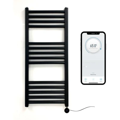Greened House Matt Black Electric Smart WiFi Controlled Heated Towel Rail 400mm W x 800mm H 7 Day Programmable Timer App Compatibility