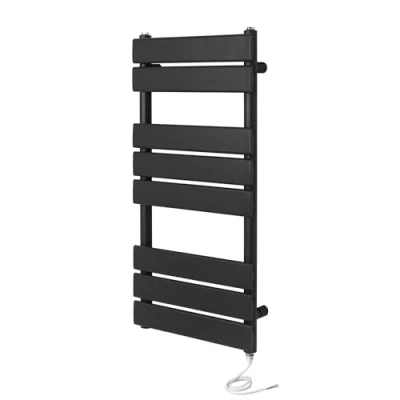 Greened House Richmond Electric Heated Towel Rail Black Flat Panel Bathroom Radiator (400mm W x 800mm H)