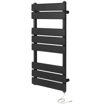 Greened House Richmond Electric Heated Towel Rail Black Flat Panel Bathroom Radiator (500mm W x 800mm H)