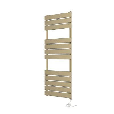 Greened House Richmond Electric Heated Towel Rail Brushed Brass Flat Panel Bathroom Radiator (400mm W x 1200mm H)