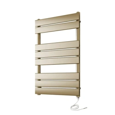 Greened House Richmond Electric Heated Towel Rail Brushed Brass Flat Panel Bathroom Radiator (500mm W x 800mm H)
