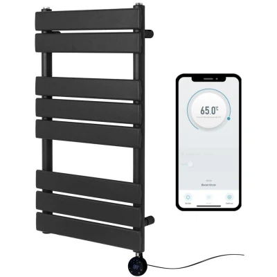 Greened House Richmond Electric Smart WiFi Controlled Heated Towel Rail Flat 7 Day Programmable Timer App Compatibility (Black, 500mm W x 800mm H)