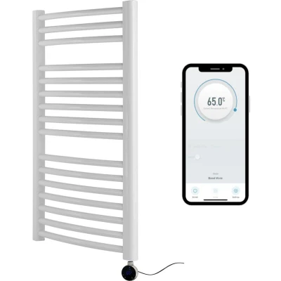 Greened House White Electric Smart WiFi Controlled Heated Towel Rail 500mm W x 800mm H Curved 7 Day Programmable Timer App Compatibility (White + Chrome Element)