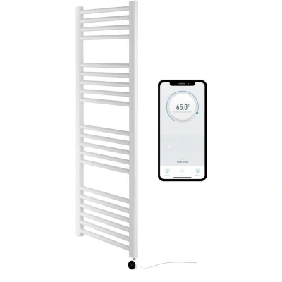 Greened House White Electric Smart Wifi Controlled Heated Towel Rail 7 Day Programmable Timer App Compatibility (White + Element, 500mm W x 1200mm H)