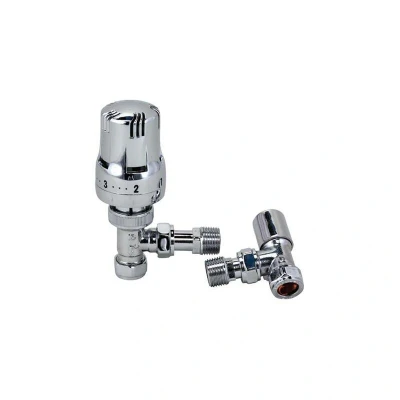 General description The Haxby Angled Thermostatic TRV Chrome Central Heating Radiator and Towel Rail Valve is a stylish and high-quality valve designed to enhance the finish of your radiator. It features a traditional look that complements towel rails, panel radiators, column radiators, and flat tube radiators. The thermostatic TRV valve offers variable heat settings and frost protection, allowing you to maintain the perfect temperature in your room. Technical specifications Material: Chrome plated solid brass Maximum working pressure: 13 bar Connections: 15mm - 1/2 BSP Water flow: Bi-directional Usage Suitable for Towel Rails Compatible with Column Radiators Works with Panel Central Heating Radiators Applicable for Vertical Flat Tube Radiators Ideal for installations where pipework comes up from the floor or out of the wall Other information Includes a thermostatic TRV and a lock shield valve 5-year warranty for peace of mind