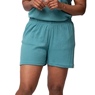 greenjama Women's Derby Rib Shorts, GOTS Certified Pajama Bottom, Topaz, 40 Kurz