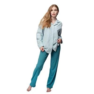 greenjama Women's Pyjama Shirt, GOTS Certified Top, Topaz, 36, Topaz