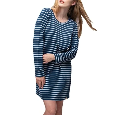 greenjama Women's Sleep Shirt Striped GOTS Certified Nightgown, Ultramarine, 36
