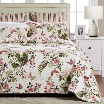 Greenland Home 100% Cotton Fashion Collection, Prewashed and Reversible Quilt Set, Multi, Twin