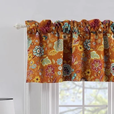 Greenland Home Astoria Semi Sheer Window Valance Decorative Treatment for Living Room, Bedroom, or Kitchen, 84 W x 19 L, Spice