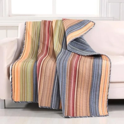 Chic and versatile, the Katy quilted throw features a variety of warm and cool colors With a broad brushstroke of tasteful tones to compliment any bedroom theme, Katy reverses to a coordinating blue stripe Made In China A variety of warm and cool colors A broad brushstroke of tasteful tones to compliment any bedroom theme.Reverses to a coordinating blue stripe.Easy care machine washable cotton.100-percent cotton face, back and fill
