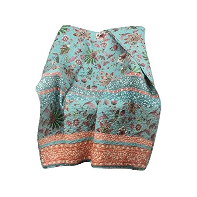 Throw measures 50 x 60 inches (+/- 2 inches) The perfect quilt for your favorite chair or sofa. Features stylized jacobean fern and floral prints in turquoise and coral tones for an exotic, tropical look and feel. Package Dimensions: 15.0 L x 4.0 H x 12.0 W (inches)