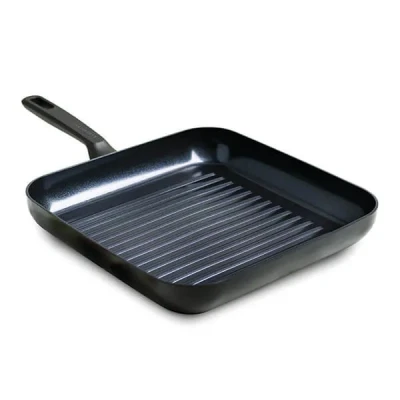 Part of the GreenPan Memphis Collection which is perfect for daily cooking and intensive use, this 28cm Square Grill Pan offers even heat distribution thanks to its thick forged Magneto base which is suitable for use on all hob types, including induction. Made from aluminium, this GreenPan Memphis square grill pan has a Thermolon ceramic non-stick coating that is enhanced with diamonds and is fully PFAS-free.Finished with an ergonomically designed stay-cool handle, this square grill pan from GreenPan is oven safe (to 180°C) and dishwasher safe, although hand washing is recommended.The GreenPan Memphis 28cm Square Grill Pan is supplied with a manufacturer's limited lifetime guarantee (non-stick 2 years).