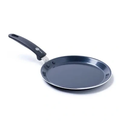 ManoManoThe Greenpan Essentials 24cm Pancake Pan is suitable for use on all hob types including induction due to the Magneto technology. The extra thick forged base stays flat and in contact with the cooking surface at all times for efficient performance. The handles are formed from Bakelite for a stay-cool and comfortable grip whilst in use. The ceramic non-stick coating allows non-stick cooking, quick and even heat distribution. The coating is tough and durable which will not blister even at high temperatures. The 24cm Pancake Pan is suitable for use in the oven up to 180°C and can be washed into a dishwasher for easy and convenient cleaning.