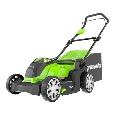 PERFECT FOR MEDIUM SIZED LAWNS - choose a 40V 2Ah battery for lawns up 250m² or 40V 4Ah for lawns up to 500m² to achieve all the performance of a petrol driven mower without the mess, noise and environmental impact 6 CUTTING HEIGHTS AND 2-IN-1 MULCHING OR COLLECTION – a single lever makes it easy to raise the blades from 25mm to 80mm, while the clippings can be collected in the large 50L bag or mulched into fine pieces to add nutrients back into the lawn EASY TO MANOEUVRE AND STORE - large 18cm rear wheels make it very easy to move over all kinds of ground, it has a comfortable handlebar for easy handling which folds down to save storage space when not in use USE WITH ANY GREENWORKS 40V BATTERY - this is a special 'tool only' package that comes without a battery, so if you already own a Greenworks 40V tool you can use the same battery to save space, cut costs and reduce waste 3 YEAR GUARANTEE – by Greenworks, a world leader in electric tools and battery technology, with a global reputation for smart design, high performance and outstanding customer service, Weight: 40.78551847 pounds, Manufacturer: Greenworks