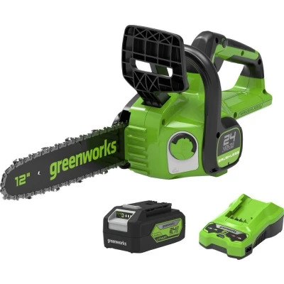 This chainsaw is powered by a new generation 24V 4Ah lithium battery, offering you the convenience of interchangeability. This battery can be used across all Greenworks 24V tools, allowing you to save money, reduce waste, and minimize storage space. Enjoy up to 22 minutes of runtime on a single charge, with a full charge taking just 45 minutes and an impressive 80% charge completing in only 25 minutes. An integrated LED fuel indicator keeps you informed about your battery status, ensuring you always know how much power you have left.