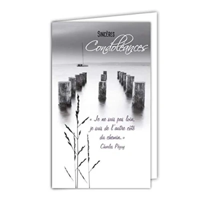 Greetings Condolence Card Small Size Grey Gross Space Peaceful Landscape Sea Boat Grass Made in France