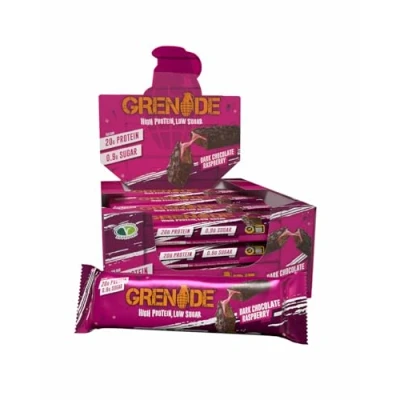 Grenade High Protein, Low Sugar Bar Dark Chocolate Raspberry, 12 x 60 g