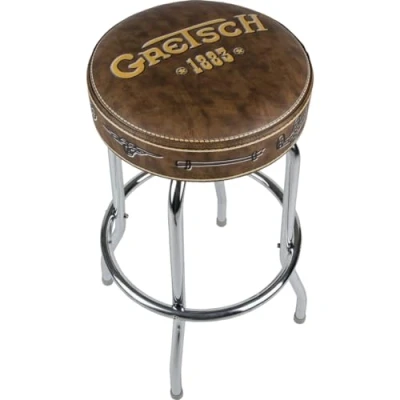 Gretsch "1883" Barstool, Perfect for Guitar Players and Fans, Matte Yellow Logo Foam Padded, 30", Brown