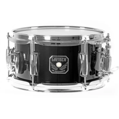 Compact power: The Gretsch Snare Drum Blackhawk Mighty Mini offers a bright, crisp, and powerful acoustic tone with its 7-ply poplar shell and 30° bearing edge. Versatile application: Thanks to the GTS mounting system, the snare can be used as a side snare for flexible drum set configurations. Robust construction: The 1.6 mm triple-flanged steel hoops and chrome hardware ensure stability and durability. Stylish design: The black finish gives the snare an elegant look and fits with any drum kit setup. Flexible sizes: Available in 10 x 5.5" and 12 x 5.5" variants, the Blackhawk Mighty Mini meets various drummers' needs.