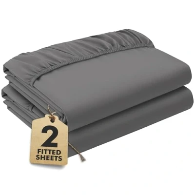 Grey Fitted Sheet Double Beds (135x190 cm, Deep 35 cm) Pack of 2 Soft Microfibre Elasticated Cover Breathable, Durable & Easy Care Bottom