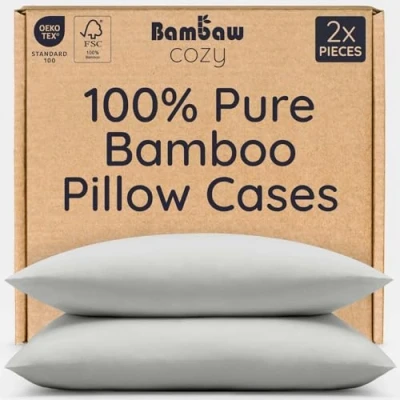 Premium Bamboo Quality: These bamboo pillowcases are made from 100% Tanboocel bamboo fibres, no blends or synthetics, to preserve all of bamboo’s natural benefits. Our bamboo bedding is FSC and OEKO-TEX Standard 100 certified for guaranteed quality. Good for Skin & Hair: Wake up looking and feeling your best. The silky-smooth texture of this bamboo pillowcase reduces friction and helps prevent wrinkles, acne, frizz and split ends. Lab-tested hypoallergenic and breathable, these bamboo pillowcases are gentle on sensitive skin and absorb excess moisture without drying out skin or hair. Naturally Cooling: Naturally 2,7 times cooler than cotton, our cooling pillow cases keep you dry and fresh all night. Perfect for hot sleepers, this cooling pillow case helps prevent overheating and night sweats for uninterrupted sleep. Create Your Ideal Bedding: This listing includes a bamboo pillow cases pack of 2 (pillows not included). Pair it with other Bambaw Cozy bedding items sold separately and wrap yourself in comfort pure. Easy Care: Machine wash at 30°C and tumble dry on low. Bamboo fabric becomes softer with each wash and maintains its beauty over time. Avoid bleach and fabric softeners to preserve its natural qualities.