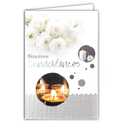 Grey Silver Shiny Condolence Excess Deuil Candles Pink White Flowers Card Made in France