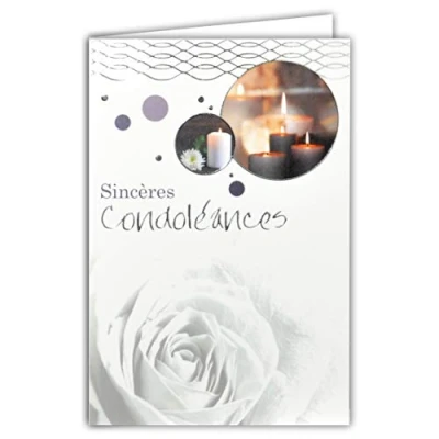 Grey Silver Shiny Excess Deuil Pink Flower Candles Condolence Card Made in France