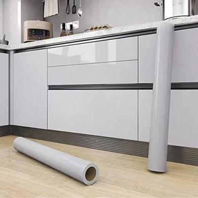 Grey Sticky Back Plastic Roll 30X300cm Self Adhesive Wallpaper Gloss Glitter Effect Peel and Stick Contact Paper Vinyl Film Decor Wall Kitchen Countertop Cabinet Removable Waterproof Furniture Sticker