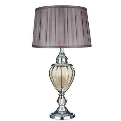 Greyson 1 Light Table Lamp Chrome, Amber , Glass Urn with Brown Pleated Shade, E27
