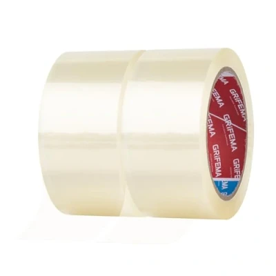 GRIFEMA GA4003 2 Clear Low Noise Packing Tape Rolls Strong Heavy Duty Parcel Adhesive Sellotape Industrial Cellotape for Boxes, Moving House(5CM X 66M)