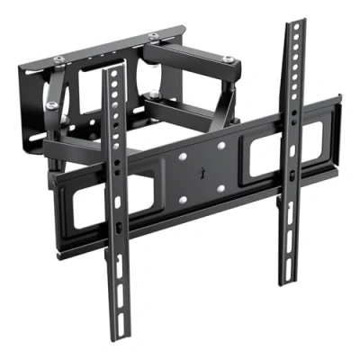 Universal TV Wall Bracket: This TV wall bracket is suitable for most 26-65 inch with MAX weight capacity of 35kg. It fits VESA patterns Max 400x400mm to Min 50x50 mm. It’s compatible with Samsung, Panasonic, Sharp, Sony, Toshiba, Thomson, LG, Philips, Hisense, TCL Excellent Flexibility: The adjustable and swivel tv wall bracket can be tilted 8° up or 12° down, to eliminate glare and reduce neck or eye strain. The slim tv wall bracket can swivel 45°left and right, rotate ±3°to adjust level, providing most comfortable and ergonomic viewing angles Safe and Robust Construction: Made with cold rolled steel, this large size tv mount has DOUBLE steel arms and can support TVs weighing up to 35kg, which is more stable than single arm and allows you adjust the optimal viewing angle precisely Saving Space: Our movable tv wall mount extends 375mm from the wall for viewing and retracts to 60mm to save space when not in use Easy Installation: The tilt and swivel tv wall bracket comes with all mounting accessories and clear manual, you can assembled the 55 inch tv wall bracket in less than 15mins ( This TV wall bracket is not suitable for plaster wall/cavity wall/soft wall)