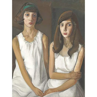 Grigoriev Wandbild, Motiv: zwei Mädchen, weiße Kleider, Gemälde, großer Kunstdruck auf Leinwand