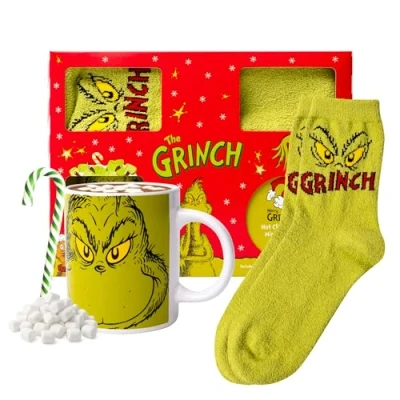 Hot Chocolate Gift Set: This Grinch Hot Chocolate Gift Set includes a ceramic Grinch mug and socks for kids & adults, along with delicious hot chocolate mix & mini marshmallows. It's a hot chocolate gift set with mug that's sure to please fans of all ages Ideal for Kids & Adults: Featuring the Grinch, this hot chocolate mug is designed for everyone! Whether you're gifting a Grinch gift to a child or a Grinch cup to an adult, this hot chocolate set is a perfect addition to Christmas stocking or stocking fillers Thoughtful Christmas Gifts: Looking for Christmas gifts for boys, girls, or even stocking fillers for women? This Grinch hamper is a fantastic choice! Perfect as a secret Santa gift for women or a Christmas stocking filler for Grinch fans of all ages Versatile Gift: This Grinch mug makes an excellent birthday gift for girls and boys, ideal for fans of the Grinch. Whether it’s a special occasion or you're looking for a Grinch gift, this hot chocolate gift will be loved by all. A charming choice for Grinch gifts for girls or boys Premium Hot Chocolate Gift Set – Complete with a Grinch mug, this hot chocolate gift set is a fun and cosy treat! Whether you’re searching for Christmas gifts for women or thoughtful birthday gifts, this hot chocolate gift is a delightful option