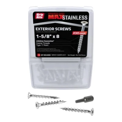 Replaces the Grip Rite MAXS62689 Ideal for fastening decking, siding, roofing, finish and trim. 306 Grade Stainless Steel Screws for extreme climates and cedar applications 1LB. Tub Can be used with Cedar, Redwood, composite & PVC Materials, Weight: 0.15 pounds, Manufacturer: Grip Rite